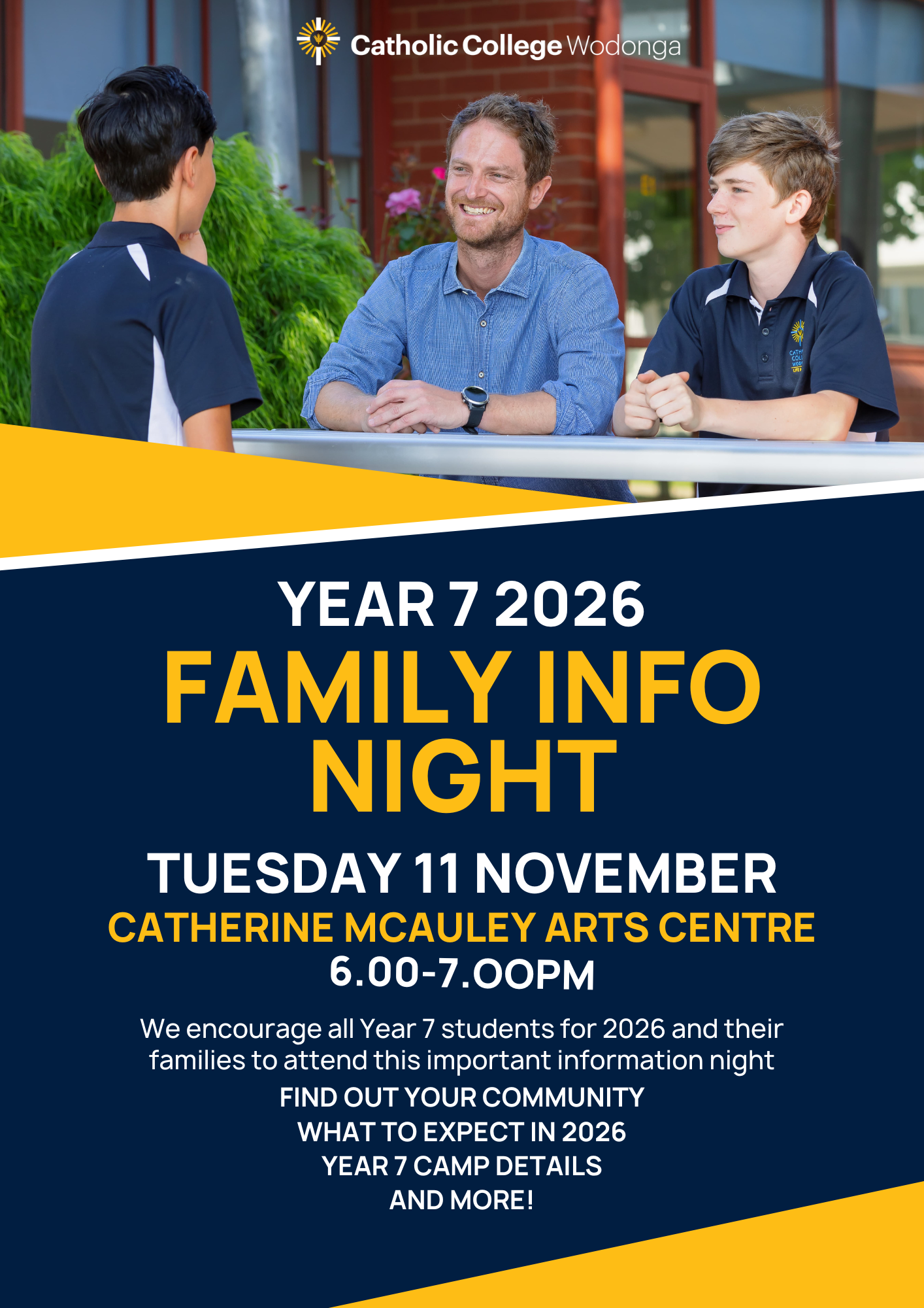 An Introduction to Catholic College Culture will be held on Wednesday 12 or Thursday 13 November 2025. Families have been sent a flyer. LINK TO DOWNLOAD